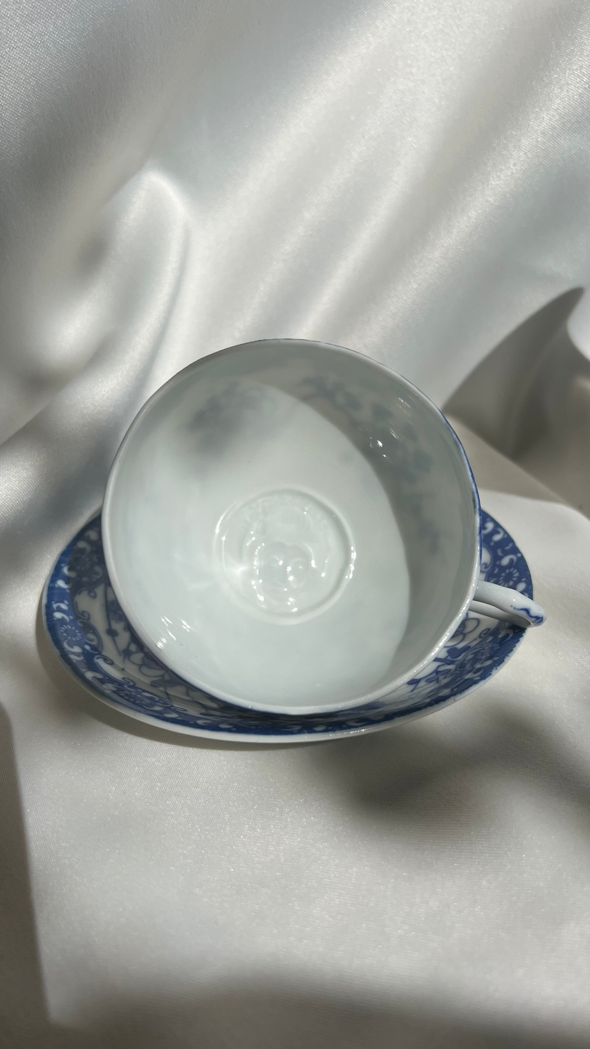 ישנן פני גיישה מגולפים בתחתית פנים הכוס