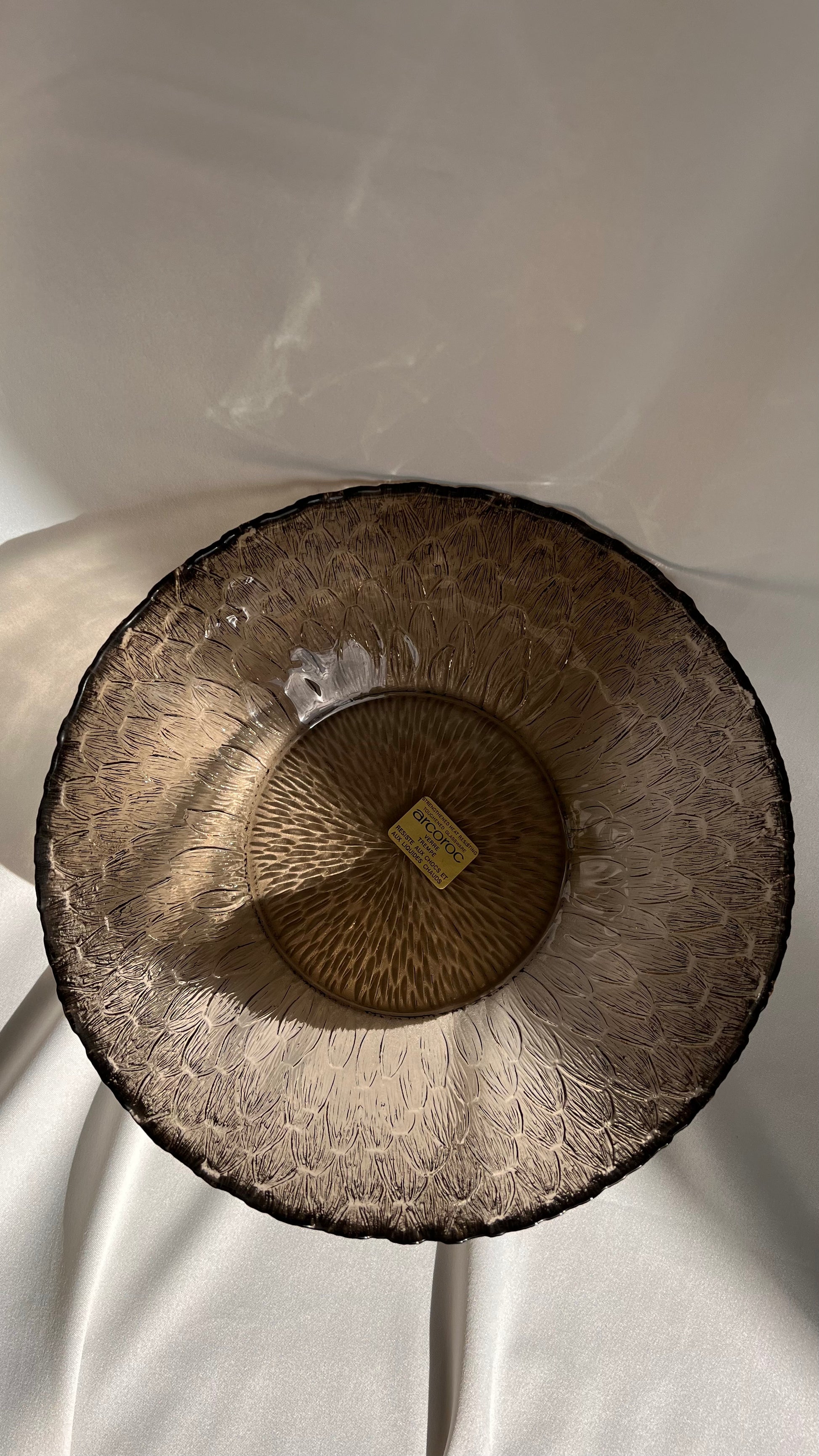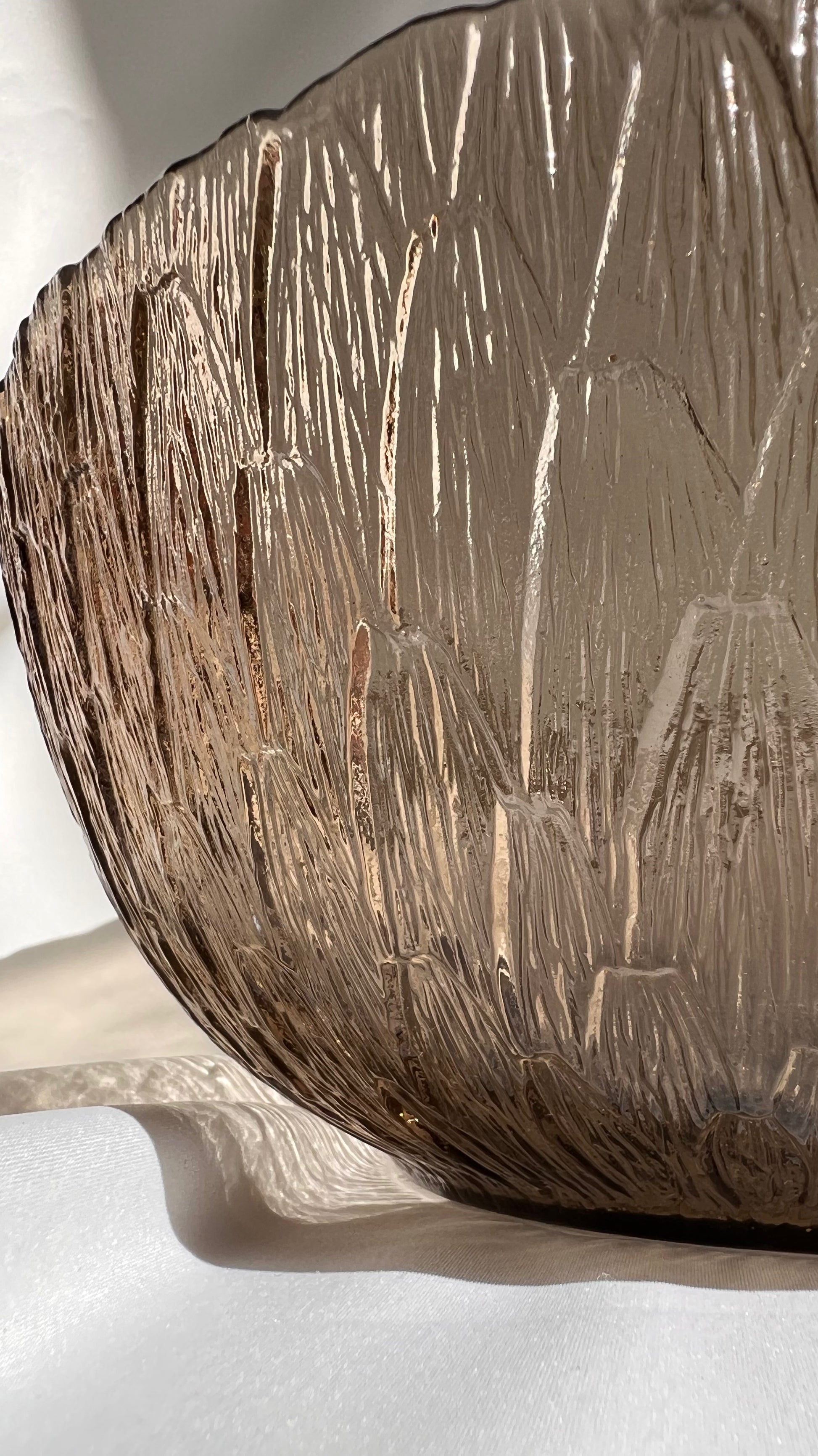 בזכוכית חומה מעושנת עם דפוס של פרח חמנייה