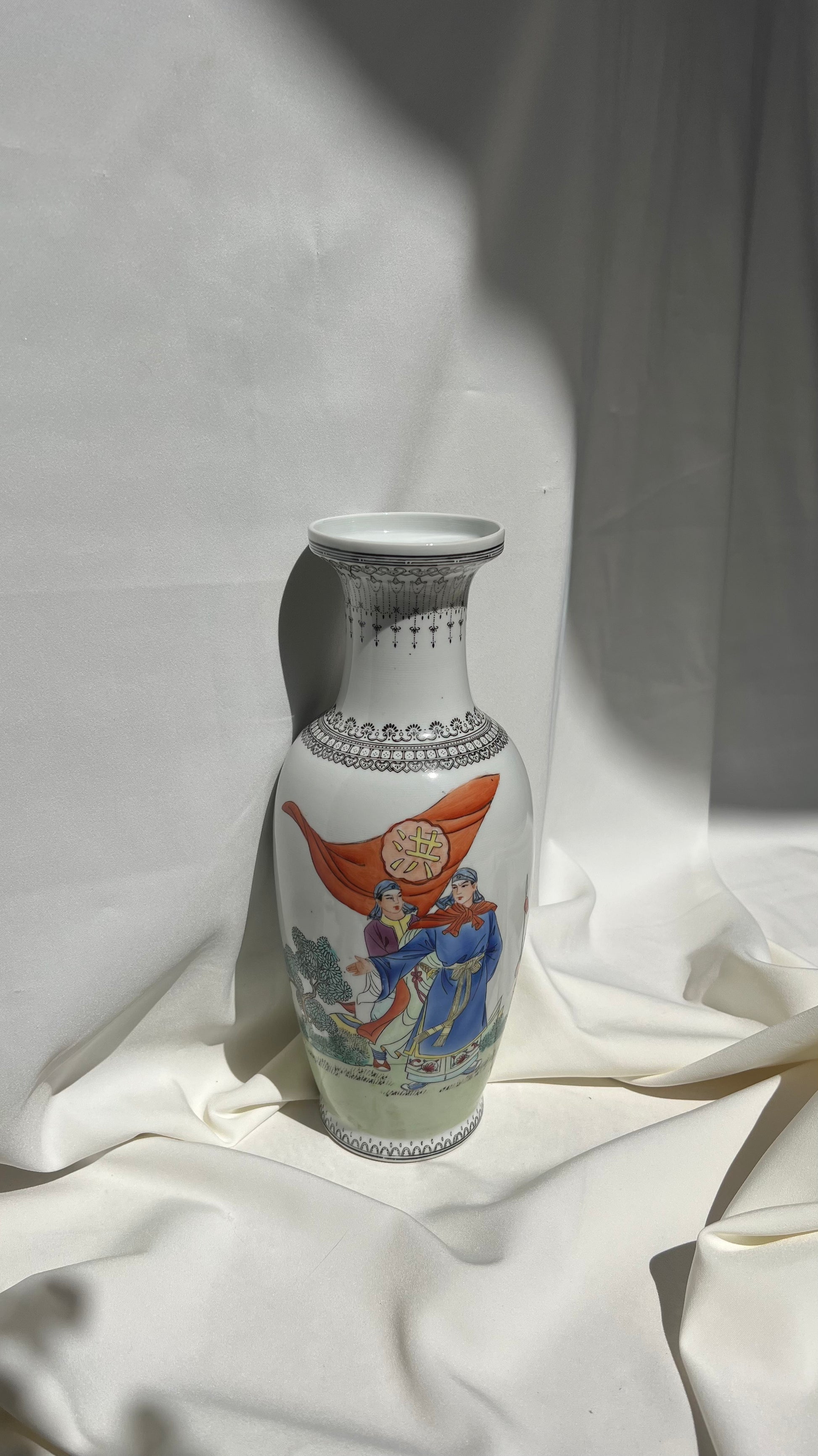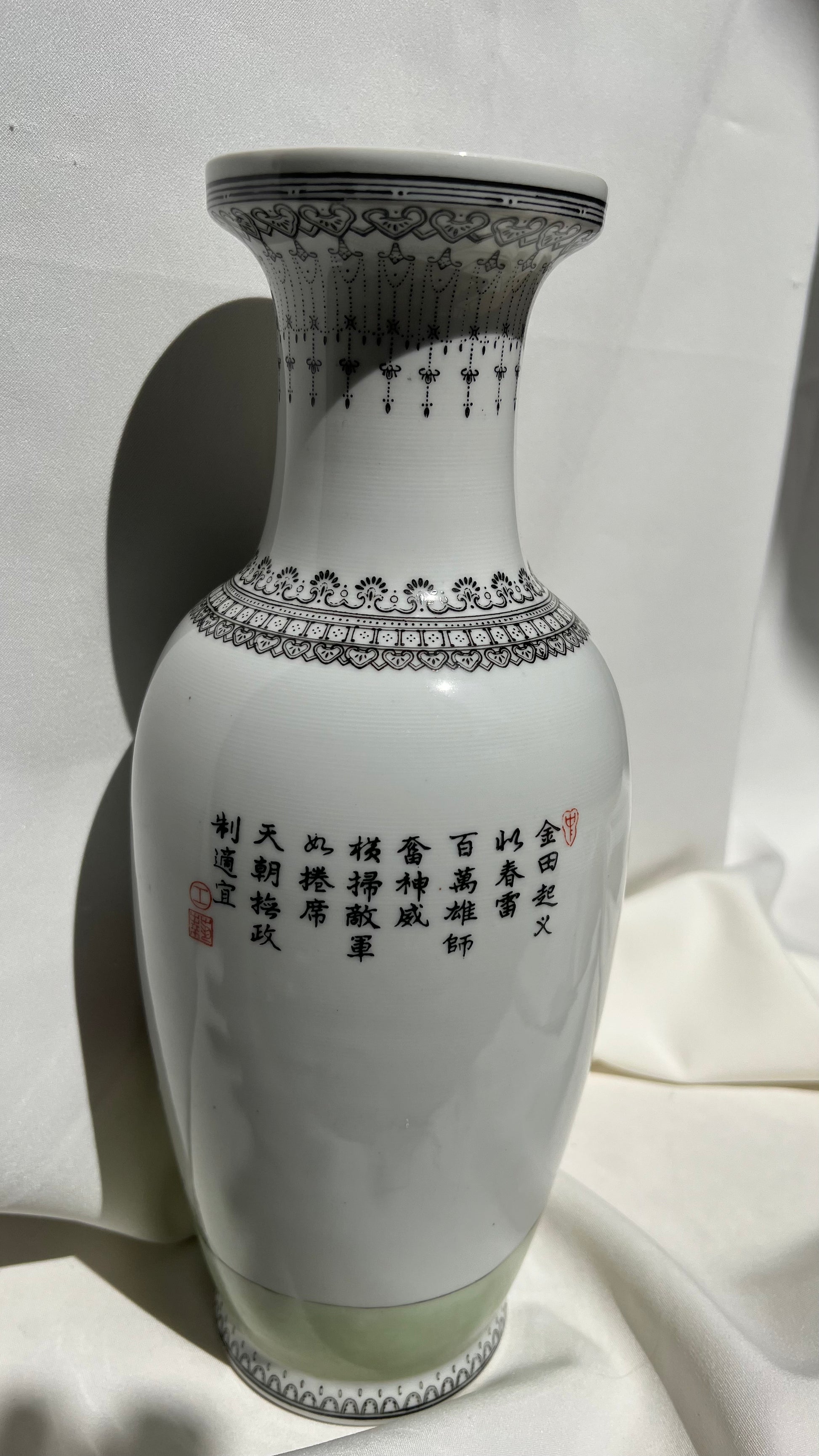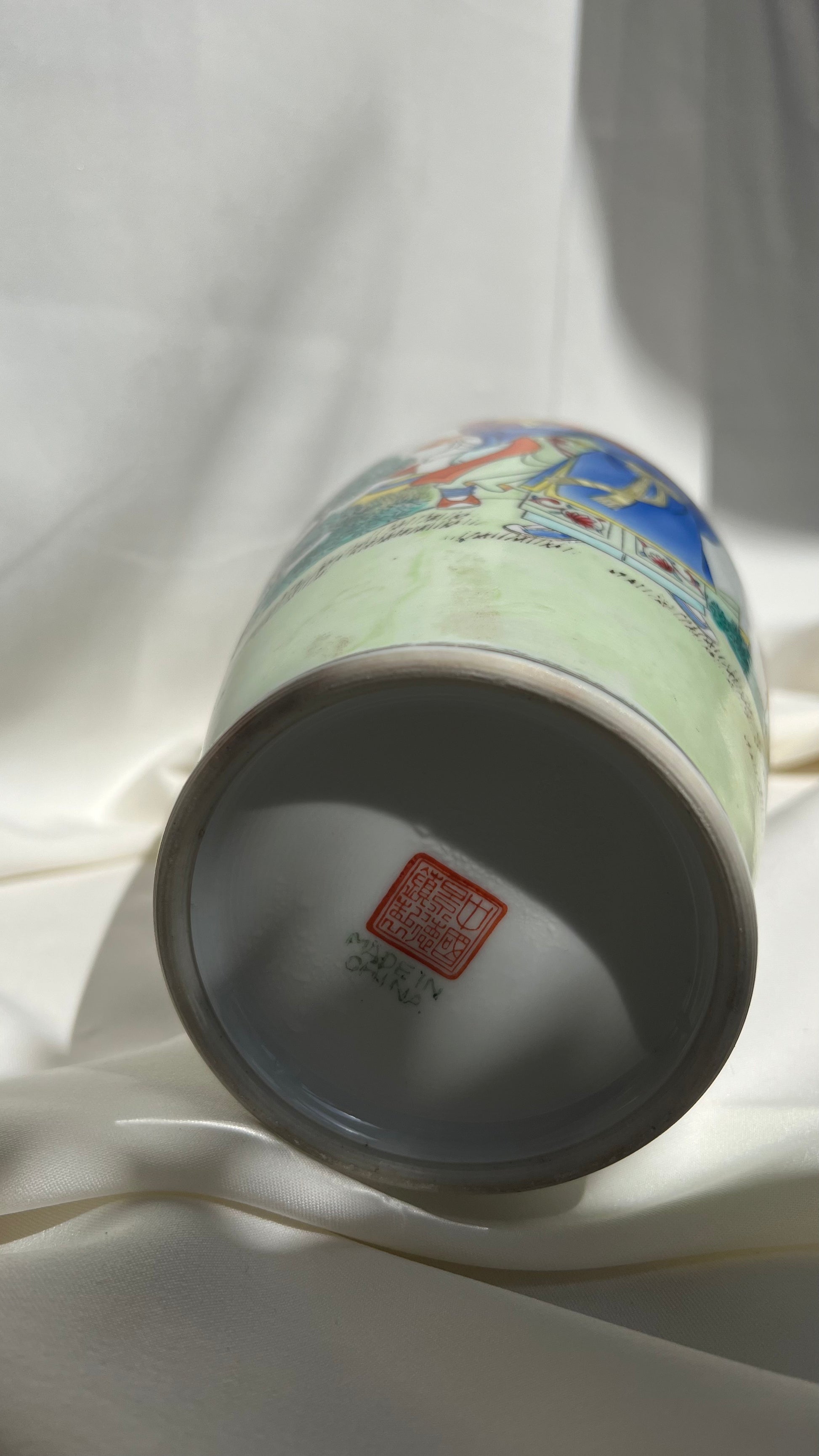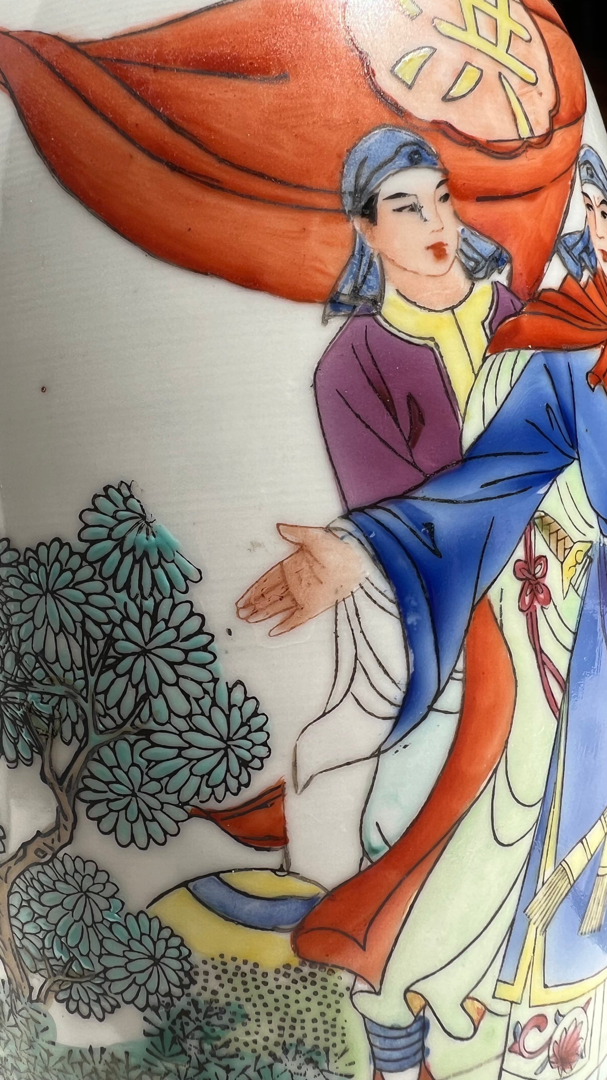 על האגרטל עבודת יד של אמן מקומי המתאר סצנה של מרד שהתרחש באמצע המאה ה19 ״Jintian Uprising״