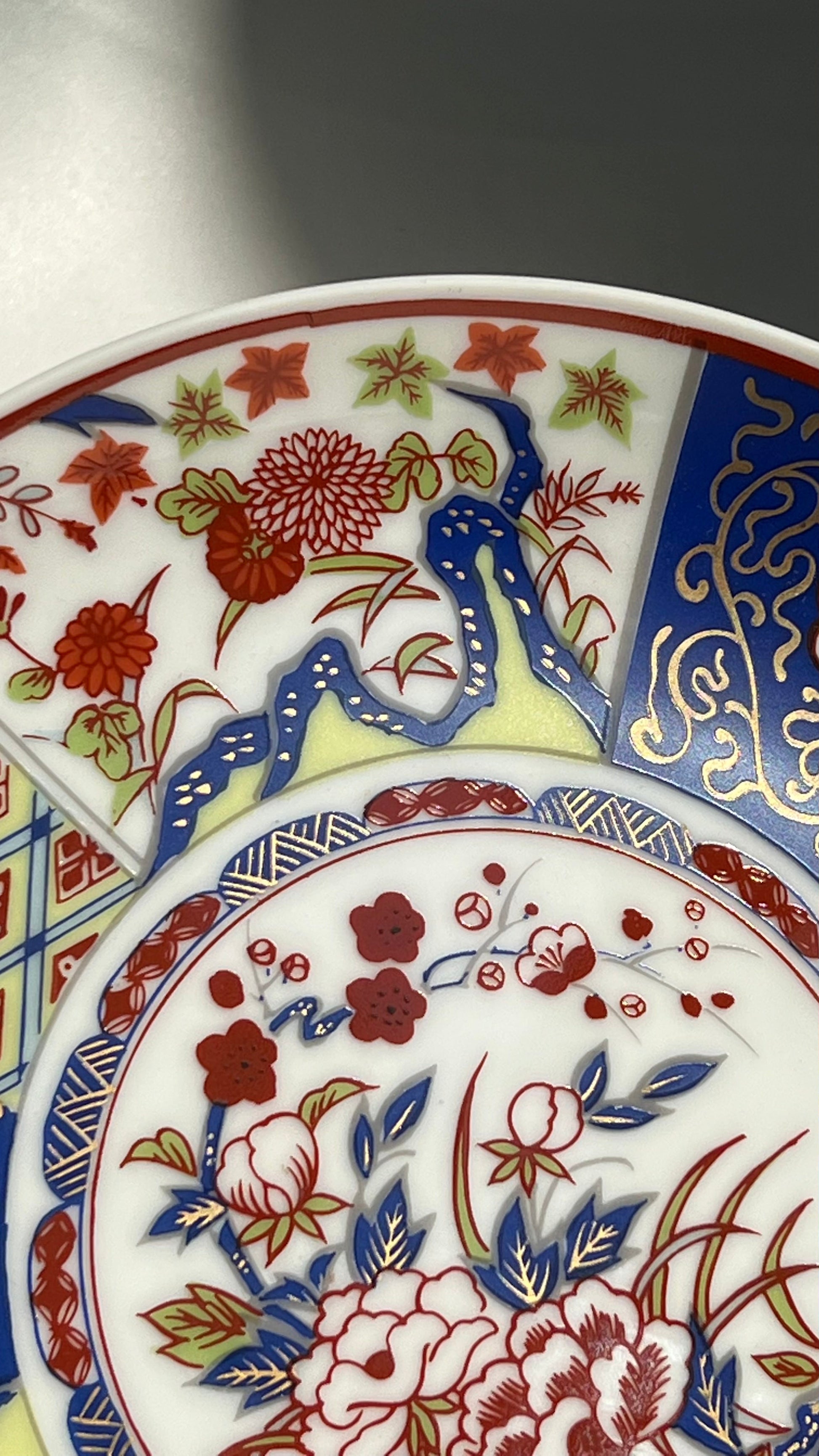 צלחת נוי עם מעמד וינטג' יפני